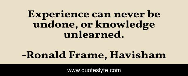 "Ronald Frame, Havisham Quotes." Quoteslyfe.com, 2025. Fri. 05 Dec. 2025. <https://www.quoteslyfe.com/quote/Experience-can-never-be-undone-or-knowledge-158834>.