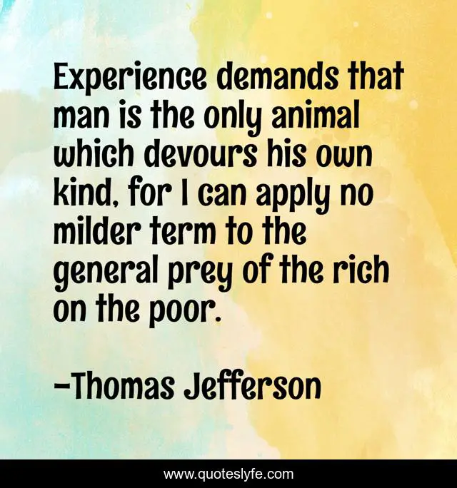 "Thomas Jefferson Quotes." Quoteslyfe.com, 2025. Fri. 05 Dec. 2025. <https://www.quoteslyfe.com/quote/Experience-demands-that-man-is-the-only-56920>.