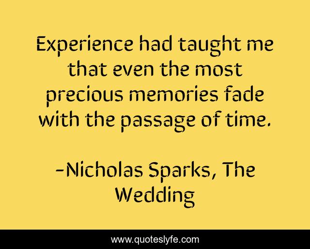 This page presents the quote "Experience had taught me that even the most precious memories fade with the passage of time.". Author of this quote is Nicholas Sparks, The Wedding. This quote is about memories, experience,.
