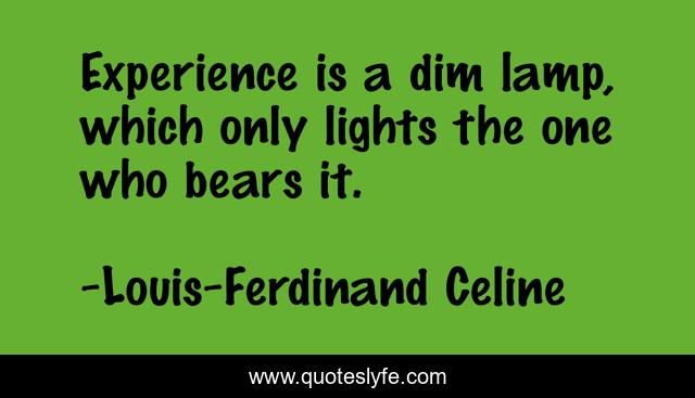This page presents the quote "Experience is a dim lamp, which only lights the one who bears it.". Author of this quote is Louis-Ferdinand Celine. This quote is about lights, lamp, which,.