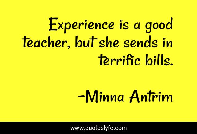 This page presents the quote "Experience is a good teacher, but she sends in terrific bills.". Author of this quote is Minna Antrim. This quote is about good, experience,.