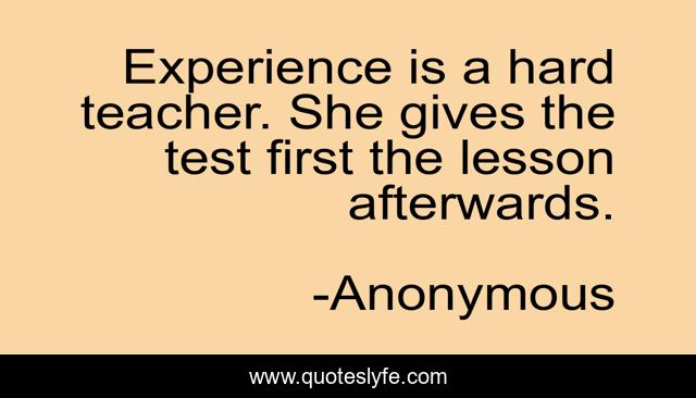 This page presents the quote "Experience is a hard teacher. She gives the test first the lesson afterwards.". Author of this quote is Anonymous. .