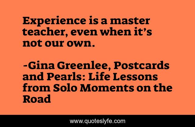 "Gina Greenlee, Postcards and Pearls: Life Lessons from Solo Moments on the Road Quotes." Quoteslyfe.com, 2025. Sun. 07 Dec. 2025. <https://www.quoteslyfe.com/quote/Experience-is-a-master-teacher-even-when-158738>.