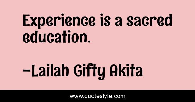 "Lailah Gifty Akita Quotes." Quoteslyfe.com, 2025. Sat. 06 Dec. 2025. <https://www.quoteslyfe.com/quote/Experience-is-a-sacred-education-33711>.