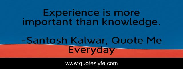 This page presents the quote "Experience is more important than knowledge.". Author of this quote is Santosh Kalwar, Quote Me Everyday. This quote is about knowledge, experience,.