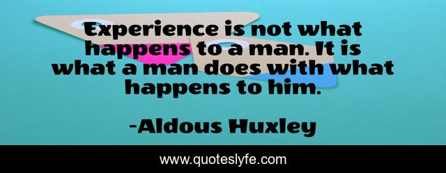 This page presents the quote "Experience is not what happens to a man. It is what a man does with what happens to him.". Author of this quote is Aldous Huxley. .