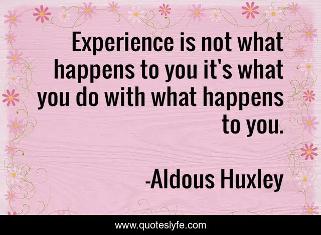 "Aldous Huxley Quotes." Quoteslyfe.com, 2025. Fri. 05 Dec. 2025. <https://www.quoteslyfe.com/quote/Experience-is-not-what-happens-to-you-307409>.