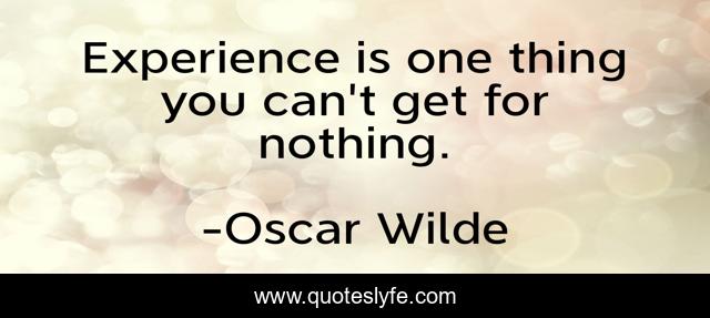 This page presents the quote "Experience is one thing you can't get for nothing.". Author of this quote is Oscar Wilde. .