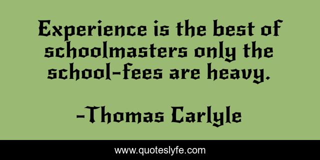 This page presents the quote "Experience is the best of schoolmasters only the school-fees are heavy.". Author of this quote is Thomas Carlyle. .