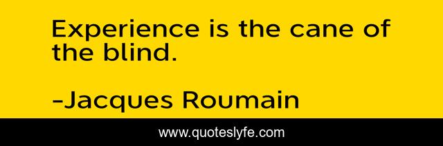 This page presents the quote "Experience is the cane of the blind.". Author of this quote is Jacques Roumain. This quote is about blind, cane,.