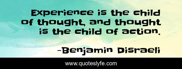 This page presents the quote "Experience is the child of thought, and thought is the child of action.". Author of this quote is Benjamin Disraeli. This quote is about thought, action, child,.