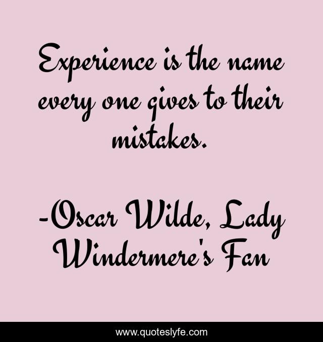 This page presents the quote "Experience is the name every one gives to their mistakes.". Author of this quote is Oscar Wilde, Lady Windermere's Fan. .