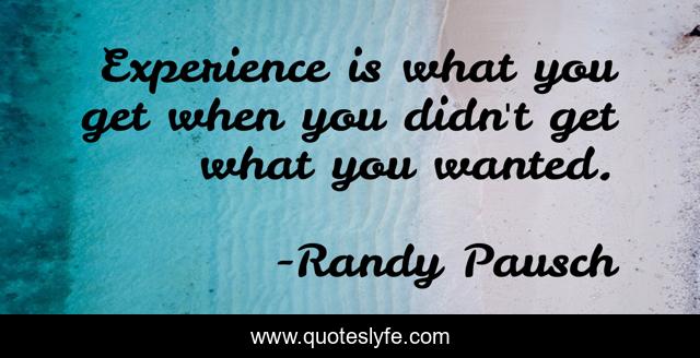 This page presents the quote "Experience is what you get when you didn't get what you wanted.". Author of this quote is Randy Pausch. This quote is about wanted, get,.