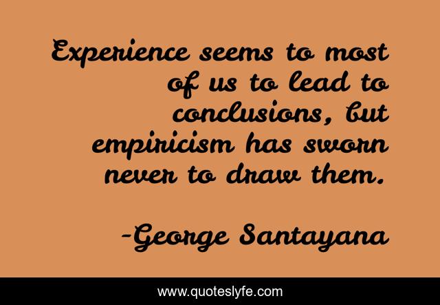 This page presents the quote "Experience seems to most of us to lead to conclusions, but empiricism has sworn never to draw them.". Author of this quote is George Santayana. This quote is about seems, lead,.