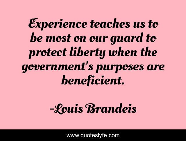 This page presents the quote "Experience teaches us to be most on our guard to protect liberty when the government's purposes are beneficient.". Author of this quote is Louis Brandeis. .