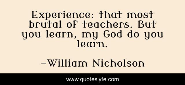 This page presents the quote "Experience: that most brutal of teachers. But you learn, my God do you learn.". Author of this quote is William Nicholson. This quote is about god, learn,.