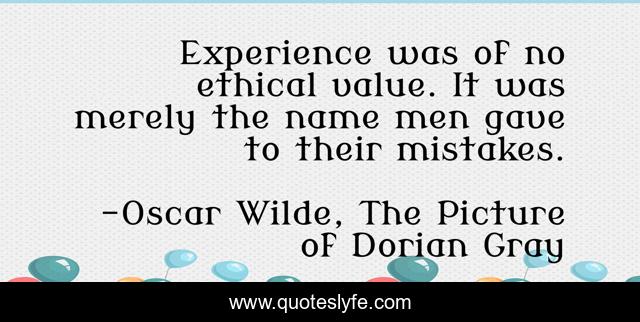 This page presents the quote "Experience was of no ethical value. It was merely the name men gave to their mistakes.". Author of this quote is Oscar Wilde, The Picture of Dorian Gray. This quote is about mistakes, experience, value,.