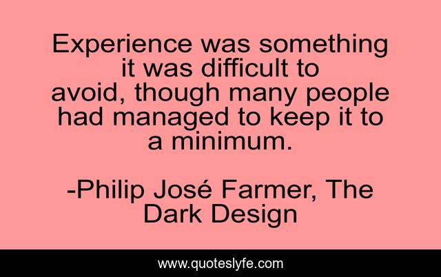 "Philip José Farmer, The Dark Design Quotes." Quoteslyfe.com, 2025. Fri. 05 Dec. 2025. <https://www.quoteslyfe.com/quote/Experience-was-something-it-was-difficult-to-256480>.