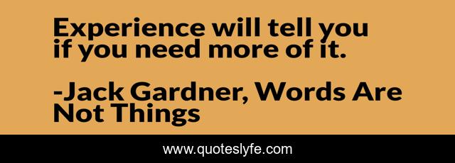 This page presents the quote "Experience will tell you if you need more of it.". Author of this quote is Jack Gardner, Words Are Not Things. .