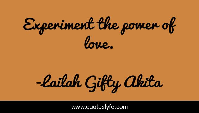 This page presents the quote "Experiment the power of love.". Author of this quote is Lailah Gifty Akita. This quote is about encouragement, inspiring, love, self-love, affection,.