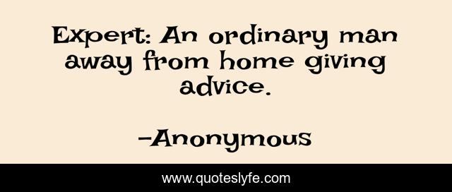 This page presents the quote "Expert: An ordinary man away from home giving advice.". Author of this quote is Anonymous. This quote is about professions, work,.