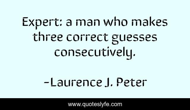 This page presents the quote "Expert: a man who makes three correct guesses consecutively.". Author of this quote is Laurence J. Peter. This quote is about three, expert, man,.
