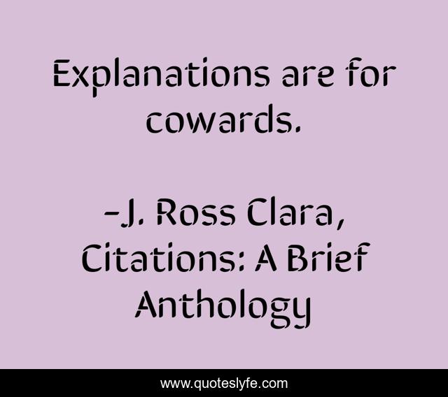 "J. Ross Clara, Citations: A Brief Anthology Quotes." Quoteslyfe.com, 2025. Fri. 05 Dec. 2025. <https://www.quoteslyfe.com/quote/Explanations-are-for-cowards-244598>.