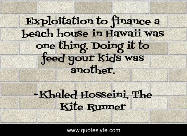 "Khaled Hosseini, The Kite Runner Quotes." Quoteslyfe.com, 2025. Sun. 07 Dec. 2025. <https://www.quoteslyfe.com/quote/Exploitation-to-finance-a-beach-house-in-223708>.