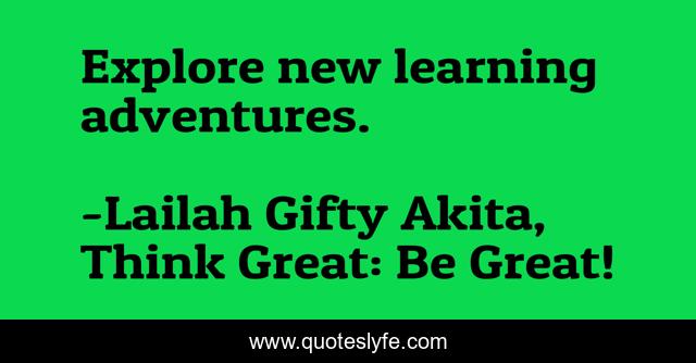 "Lailah Gifty Akita, Think Great: Be Great! Quotes." Quoteslyfe.com, 2025. Mon. 08 Dec. 2025. <https://www.quoteslyfe.com/quote/Explore-new-learning-adventures-117154>.