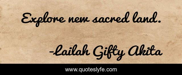 "Lailah Gifty Akita Quotes." Quoteslyfe.com, 2025. Sun. 07 Dec. 2025. <https://www.quoteslyfe.com/quote/Explore-new-sacred-land-124007>.