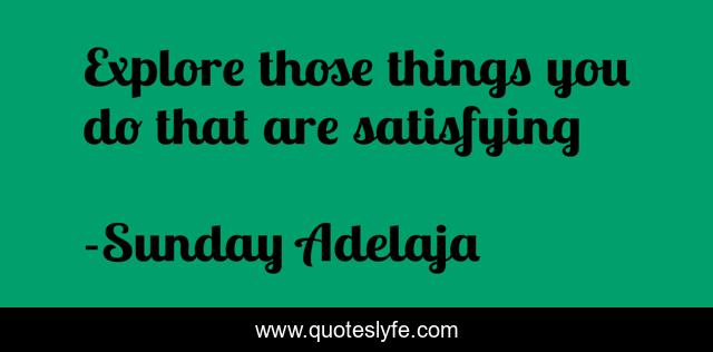 This page presents the quote "Explore those things you do that are satisfying". Author of this quote is Sunday Adelaja. This quote is about life, things, calling, satisfaction, explore, purpose, truth,.