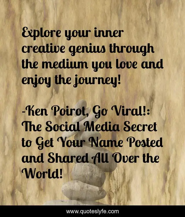 "Ken Poirot, Go Viral!: The Social Media Secret to Get Your Name Posted and Shared All Over the World! Quotes." Quoteslyfe.com, 2025. Mon. 08 Dec. 2025. <https://www.quoteslyfe.com/quote/Explore-your-inner-creative-genius-through-the-174480>.