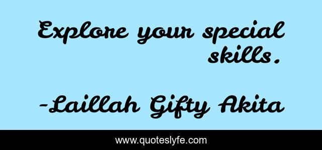 "Laillah Gifty Akita Quotes." Quoteslyfe.com, 2025. Sat. 06 Dec. 2025. <https://www.quoteslyfe.com/quote/Explore-your-special-skills-92642>.