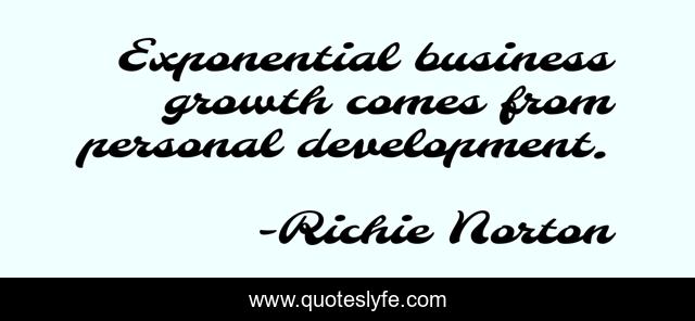 This page presents the quote "Exponential business growth comes from personal development.". Author of this quote is Richie Norton. This quote is about richie-norton, business, exponential, growth, exponential-growth, self-help, personal-development,.