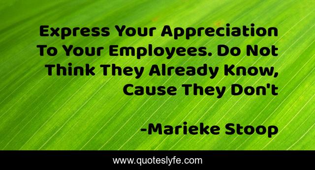 This page presents the quote "Express Your Appreciation To Your Employees. Do Not Think They Already Know, Cause They Don't". Author of this quote is Marieke Stoop. This quote is about human-being, business,.