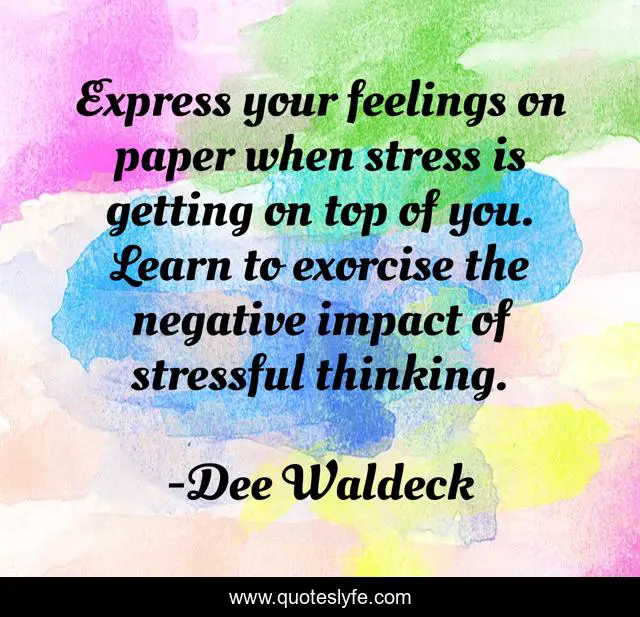 "Dee Waldeck Quotes." Quoteslyfe.com, 2025. Fri. 05 Dec. 2025. <https://www.quoteslyfe.com/quote/Express-your-feelings-on-paper-when-stress-20022>.