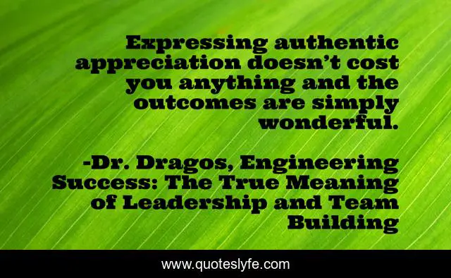 "Dr. Dragos, Engineering Success: The True Meaning of Leadership and Team Building Quotes." Quoteslyfe.com, 2025. Fri. 05 Dec. 2025. <https://www.quoteslyfe.com/quote/Expressing-authentic-appreciation-doesn-t-cost-you-32489>.