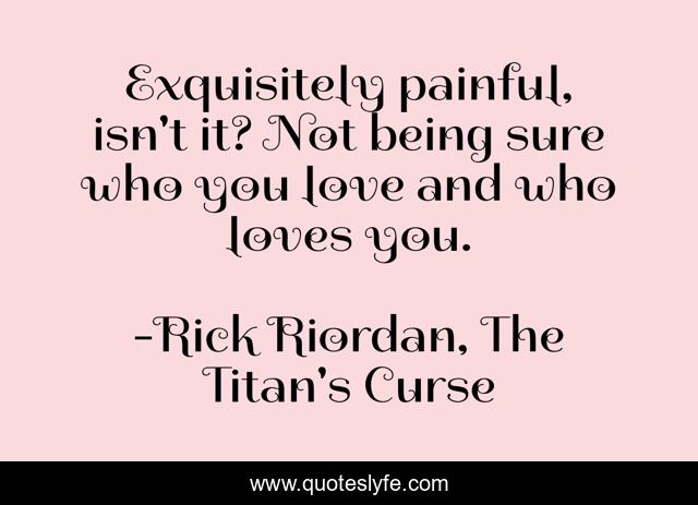 This page presents the quote "Exquisitely painful, isn't it? Not being sure who you love and who loves you.". Author of this quote is Rick Riordan, The Titan's Curse. This quote is about aphrodite, percy-jackson,.