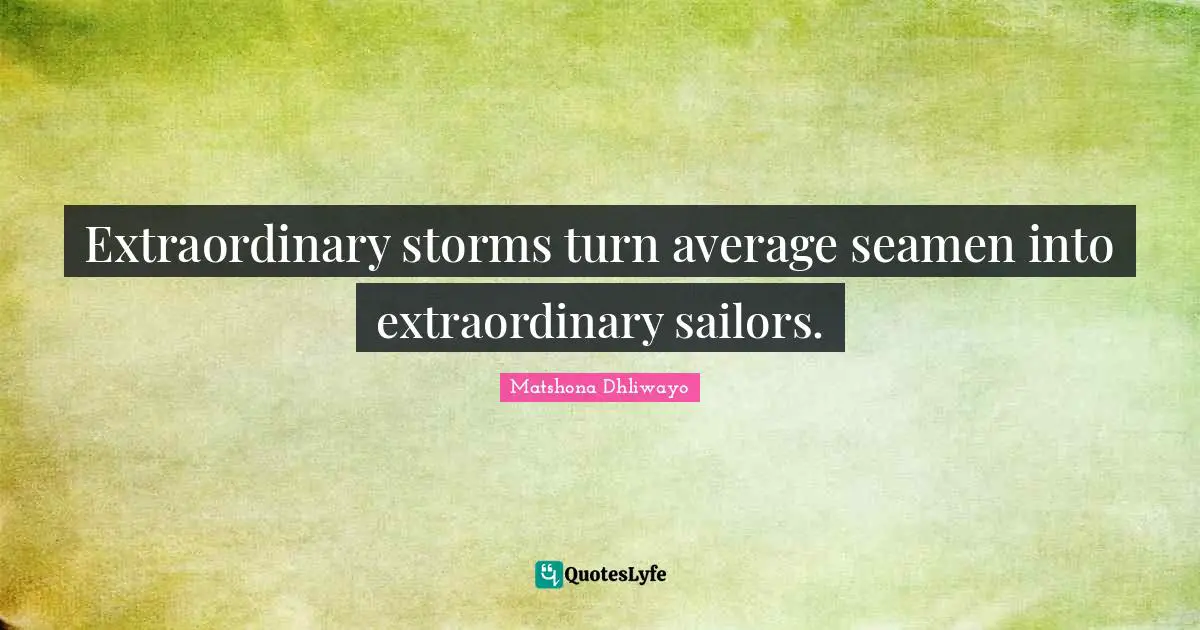 "Matshona Dhliwayo Quotes." Quoteslyfe.com, 2025. Fri. 26 Dec. 2025. <https://www.quoteslyfe.com/quote/Extraordinary-storms-turn-average-seamen-into-extraordinary-83513>.