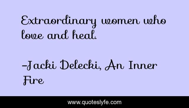"Jacki Delecki, An Inner Fire Quotes." Quoteslyfe.com, 2025. Sat. 06 Dec. 2025. <https://www.quoteslyfe.com/quote/Extraordinary-women-who-love-and-heal-132414>.