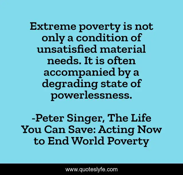 "Peter Singer, The Life You Can Save: Acting Now to End World Poverty Quotes." Quoteslyfe.com, 2025. Fri. 05 Dec. 2025. <https://www.quoteslyfe.com/quote/Extreme-poverty-is-not-only-a-condition-150382>.