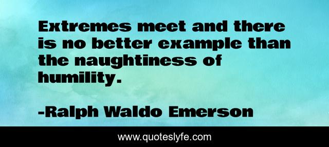 This page presents the quote "Extremes meet and there is no better example than the naughtiness of humility.". Author of this quote is Ralph Waldo Emerson. .