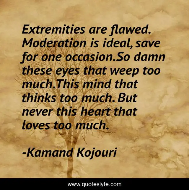 Extremities are flawed. Moderation is ideal, save for one occasion.So damn these eyes that weep too much.This mind that thinks too much. But never this heart that loves too much.