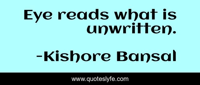 This page presents the quote "Eye reads what is unwritten.". Author of this quote is Kishore Bansal. This quote is about read, eyes, unwritten,.
