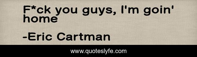 This page presents the quote "F*ck you guys, I'm goin' home". Author of this quote is Eric Cartman. This quote is about funny, comedy, legendary, south-park,.