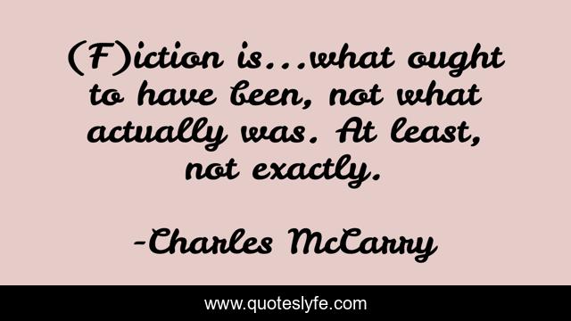 This page presents the quote "(F)iction is...what ought to have been, not what actually was. At least, not exactly.". Author of this quote is Charles McCarry. .