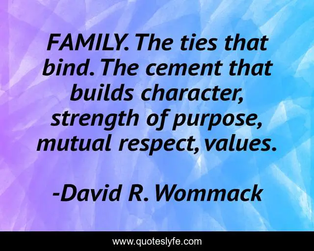 This page presents the quote "FAMILY. The ties that bind. The cement that builds character, strength of purpose, mutual respect, values.". Author of this quote is David R. Wommack. .