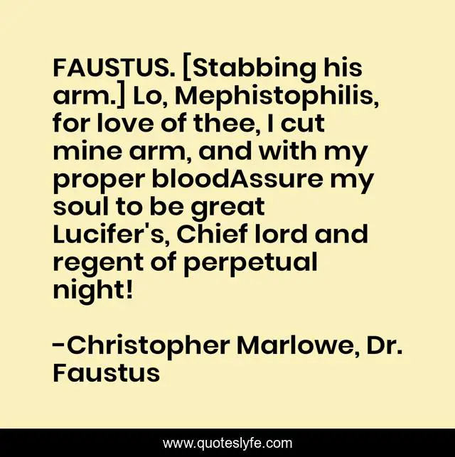 "Christopher Marlowe, Dr. Faustus Quotes." Quoteslyfe.com, 2025. Fri. 05 Dec. 2025. <https://www.quoteslyfe.com/quote/FAUSTUS-Stabbing-his-arm-Lo-Mephistophilis-for-257342>.