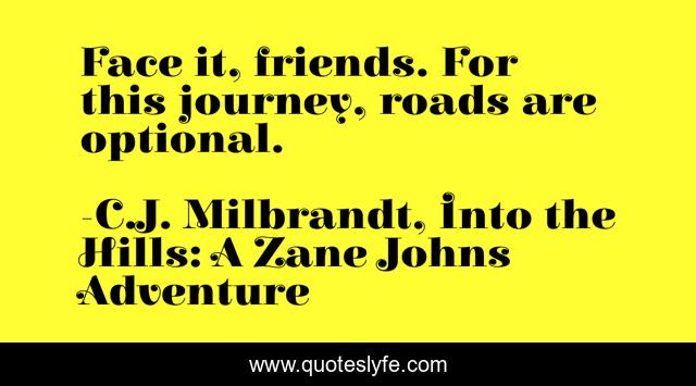 "C.J. Milbrandt, Into the Hills: A Zane Johns Adventure Quotes." Quoteslyfe.com, 2025. Fri. 05 Dec. 2025. <https://www.quoteslyfe.com/quote/Face-it-friends-For-this-journey-roads-50940>.