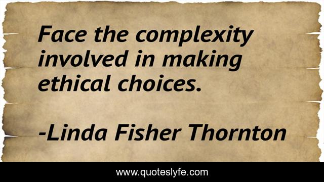 This page presents the quote "Face the complexity involved in making ethical choices.". Author of this quote is Linda Fisher Thornton. This quote is about complexity, decision-making, ethics, ethics-and-moral-philosophy,.